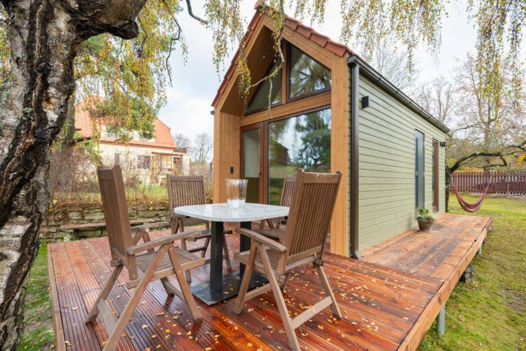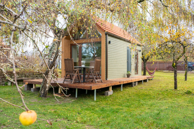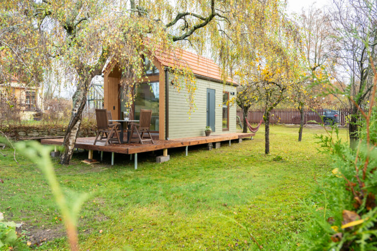 - Stiilne leili- ja pesuruum, WC – puu- või elektrikeris, tähistaeva motiiviga LED-laevalgustus ja lava alla paigaldatud reguleeritav meeleoluvalgus; erinevad puiduliigid, 50-80L veeboiler, integreeritud ja ruumisäästlik wc-pott, dušisegisti ja keraamilised plaadid, (võimalik valida vastavalt oma soovile), võimalusel ka pesumasin.