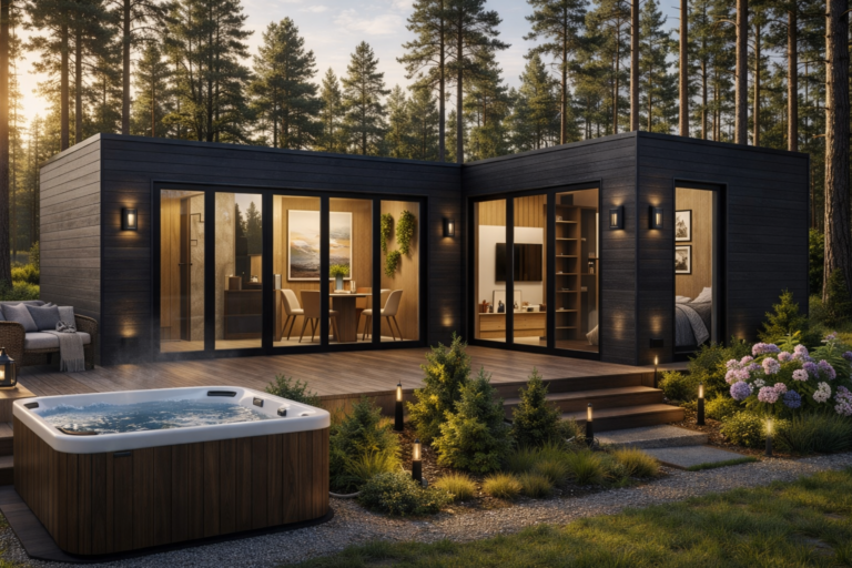 - Koosneb kahest moodulist – saunamajast ja puhkehoonest