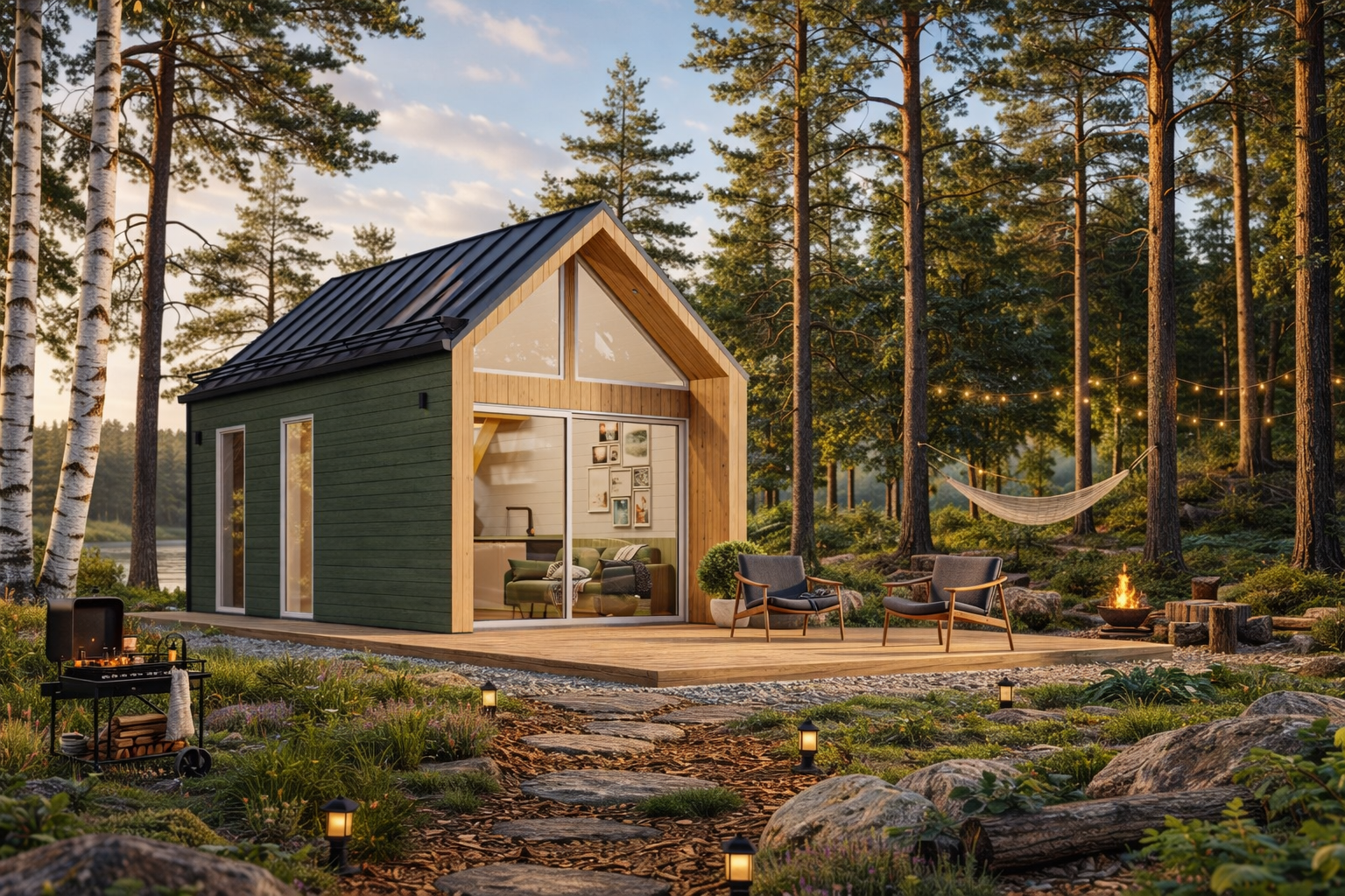- Koosneb kahest moodulist – saunamajast ja puhkehoonest